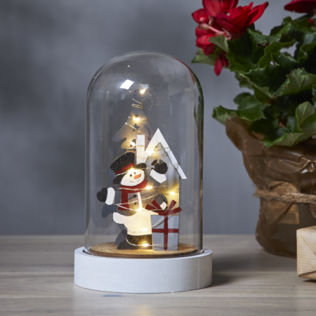 • Glaskupol med snögubbe och belysning