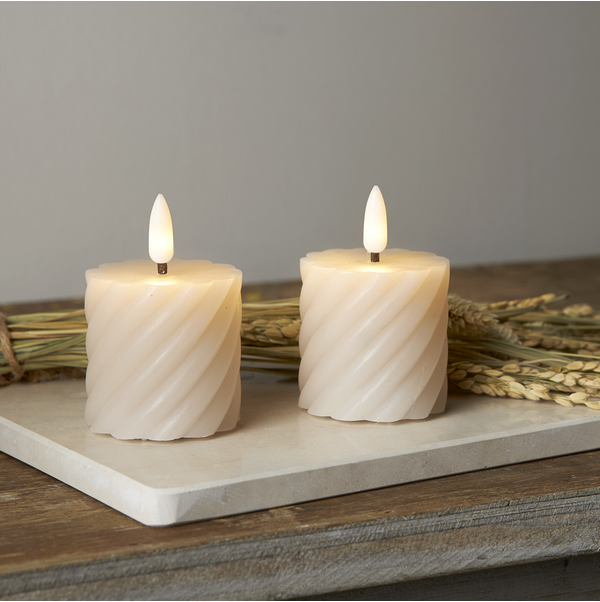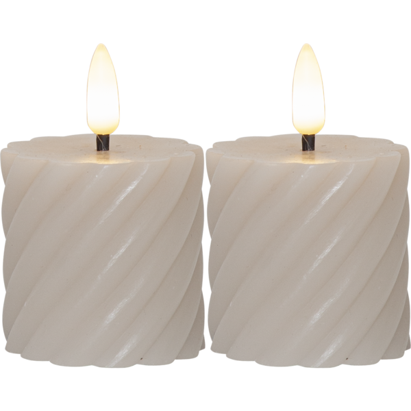 Lys upp hemmet med tidlös design och varm stämning! Dessa dekorativa blockljus i vax från Star Tradings Flamme serie kommer i ett vackert 2-pack, med en elegant twistad form och en realistisk låga som lyser i ett behagligt varmvitt sken.