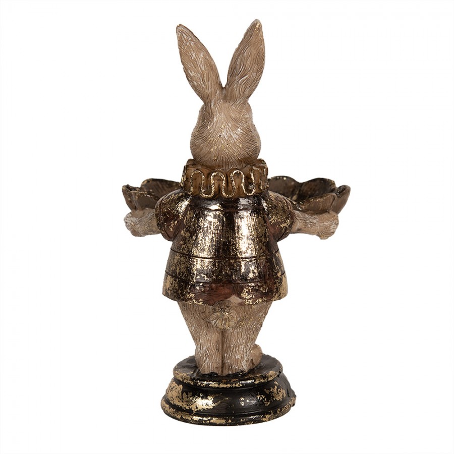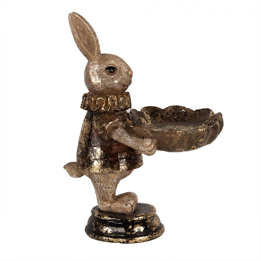 En dekorativ kaninfigur som håller i ett fat, perfekt för små dekorationer, godis eller påskägg. Den antika finishen ger ett elegant och lekfullt uttryck som passar fint i vår- och påskdekorationer. Fin att placera på ett sideboard, bord eller i ett stilleben.
