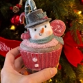 Stora cupcakefigurer med fina detaljer och glitteryta. Välj mellan två varianter; snögubbe eller pepparkaka. 299 kr/styck.