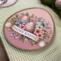 Ett dekorativt serveringsfat som sätter tonen för en mjuk och romantisk påskdukning. Det äggformade motivet med pastellfärgade påskägg, blommor och guldfärgad kant ger en elegant och inbjudande känsla – perfekt för vårens fikastunder, påskbruncher och festliga middagar.