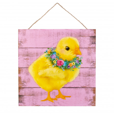 Rosa dekorationsskylt med söt påskkyckling. Fin att hänga upp som den är eller användas som blickfång i en påskkrans.