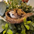 Ett dekorativt set med två små fågelbon fyllda med ägg och en liten fågel, perfekta för att skapa en naturlig känsla. Försedda med clips som gör dem enkla att fästa i påskris, på grenar eller i blomsterarrangemang. En fin detalj som ger liv åt säsongsdekorationerna.