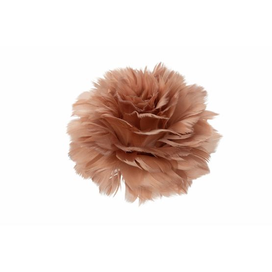 Denna blomma gjord av fjädrar är ett utmärkt sätt att dekorera grenar, påskris eller blomsterarrangemang. Enkel att fästa med hjälp av clipset på baksidan. Finns även i mullvadsbrunt och aprikos.
