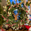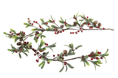 Girlang med glittriga gröna blad, röda bär och kottar. Perfekt för att skapa en mysig julkänsla.