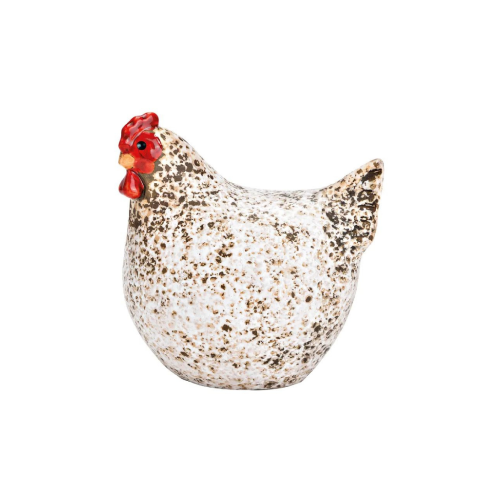 En dekorativ höna i keramik med rustik, spräcklig yta som ger ett klassiskt och lantligt uttryck. En tidlös dekoration som passar fint i köket, på hyllan eller som en del av ett stilleben, lika fin till påsk som året runt.