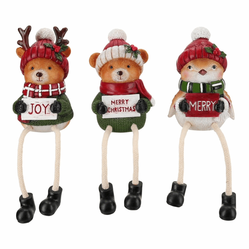 Skapa en inbjudande och festlig känsla i ditt hem med dessa sittande djurfigurer med långa ben. Perfekta att placera på en hylla eller spiselkrans där benen kan hänga fritt och bidra till en varm och dekorativ helhetskänsla. Välj mellan tre varianter, säljs styckvis.