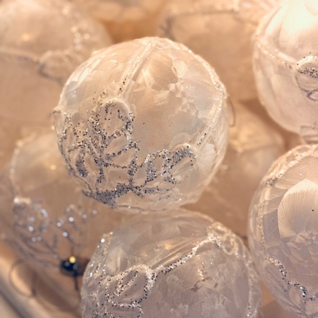 Ge julgranen en vintrig elegans med dessa vita snöflingor dekorerade med gnistrande glitter. De fångar ljuset på ett vackert sätt och ger dekorationen extra lyster. Tillverkade av återvunnet material och lätta att hänga upp, perfekta för att skapa en stämningsfull gran.