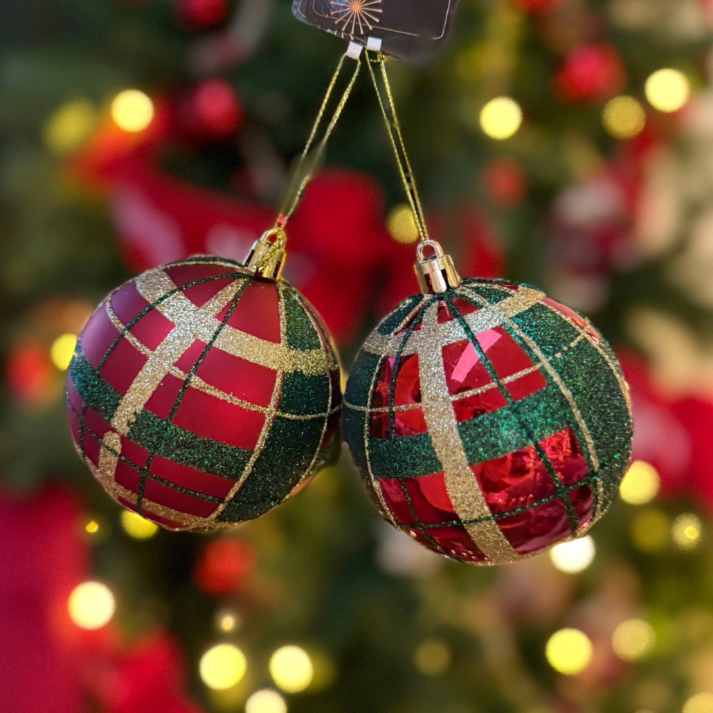 Skapa en klassisk och festlig känsla i julgranen med dessa vackra skotskrutiga julkulor i röd, grön och guld. De finns i två olika utföranden: en matt och en blank. Matcha dem tillsammans eller välj din favorit för att ge julgranen en harmonisk helhet.