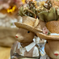 Denna lantligt klädda kaninherre med en vacker stråhatt, fungerar både som en dekorativ skulptur och en funktionell inomhuskruka. Hatten kan användas för dina favoritväxter och skapa en charmig atmosfär i hemmet. En perfekt detalj för att ge en lantlig och personlig touch till ditt hem. Se även matchande kanindam.