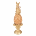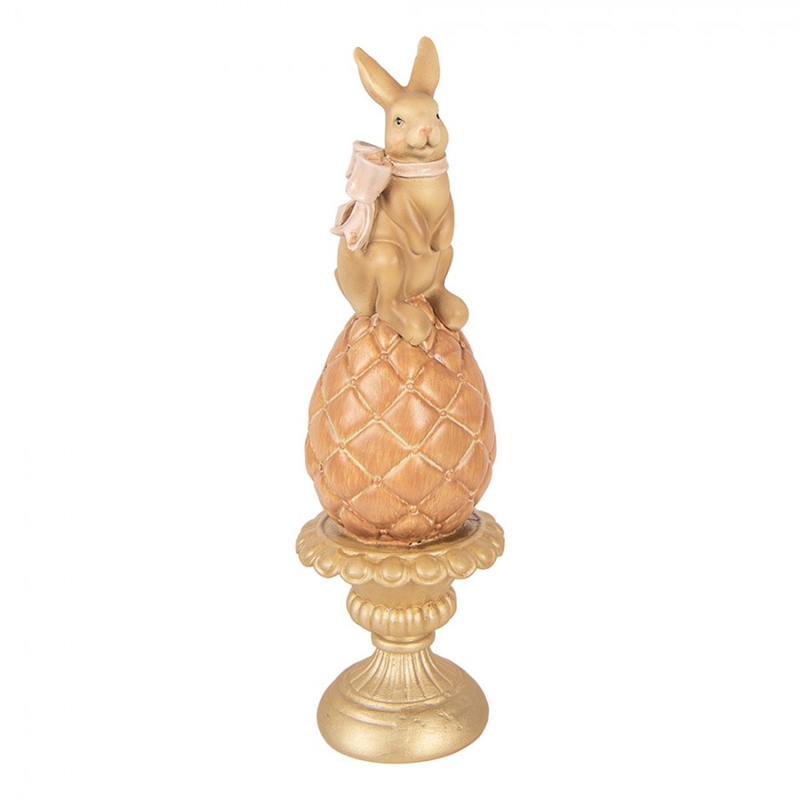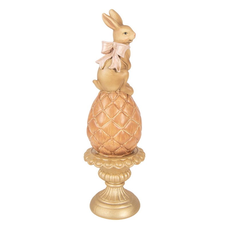 En unik dekoration i form av ett påskägg på fot med en söt liten kanin iklädd en rosett sittandes på toppen. Denna dekoration är perfekt för att skapa en mysig och varm atmosfär i ditt hem under påsken. Kaninens jordnära färger gör att den passar in i olika inredningsstilar.