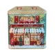 En charmig plåtburk i form av ett klassiskt townhouse, dekorerad med ett vintrigt motiv föreställande en traditionell cookie- och godisbutik. Med sina detaljerade illustrationer och nostalgiska känsla blir burken både en praktisk förvaring och en vacker prydnad som sprider julstämning i hemmet. Perfekt för småkakor, konfekt eller andra godsaker, men även lika fin att använda som dekorativ förvaringsburk.
