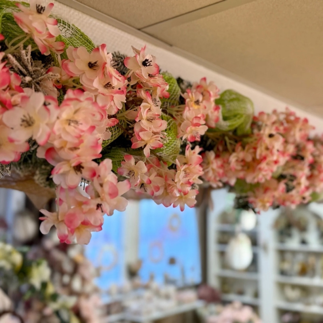 En dekorativ blomgirlang från Mica Decorations med täta rosa blommor som skapar ett mjukt och romantiskt uttryck. Perfekt att använda som väggdekoration, över ett bord, runt en spegel eller som del av kreativa arrangemang som kransar och bordsdekorationer. Den konstgjorda girlangen håller sig lika vacker år efter år och kräver ingen skötsel.