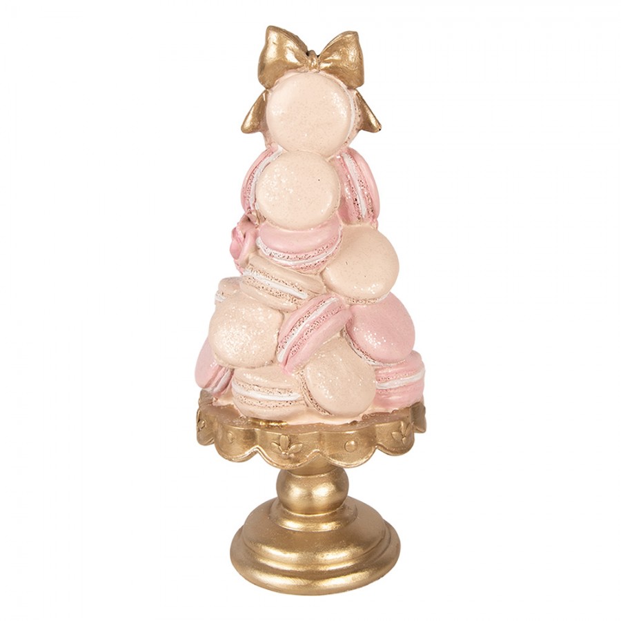 Unik prydnad i form av en rosa macarontårta som står på ett guldfärgat tårtfat och är dekorarad med en guldrosett på toppen. Denna prydnad för tankarna till sagornas värld och skapar en festlig och lekfull atmosfär i hemmet. Passar lika bra under påsken som till barnrummet.