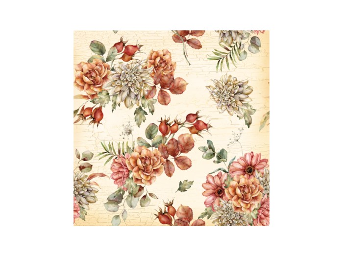 Skapa en inbjudande dukning med denna servett. Servetten har ett vackert motiv av aster, dahlior och nypon.