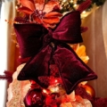 Denna vinröda rosett är stoppad för att få en fyllig och mjuk form. Den har en elegant sammetsyta som pryds av subtila glitterränder som fångar ljuset på ett vackert sätt. Rosetten kan hängas i allt ifrån julgranen, dörrkransen, som en inbjudande detalj på ytterdörren eller som en dekorativ accent i din inredning.