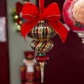 En pampig hängande spira med vackra röda, gröna- och guldfärgade ränder med skimrande glitterdetaljer. Den dekorativa formen ger en klassisk och elegant känsla som gör den till ett riktigt blickfång i julgranen eller som dekoration i ett fönster.