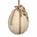 Stort och vackert ägghänge dekorerat med textildetaljer och blommor. Denna äggdekoration sprider en romantisk och elegant känsla i hemmet under påsken och våren. Passar perfekt att hänga i ett fönster.
