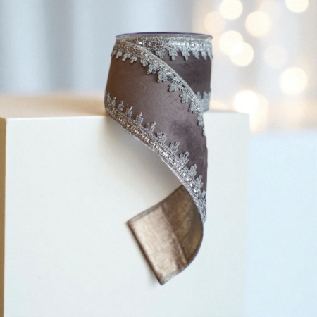 • Grått sammetsband med silverbroderade kanter