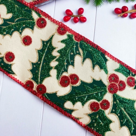 • Rött sammetsband med gröna blad